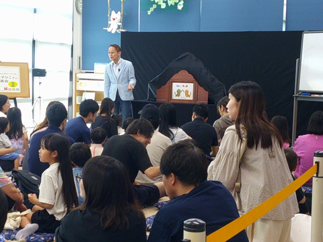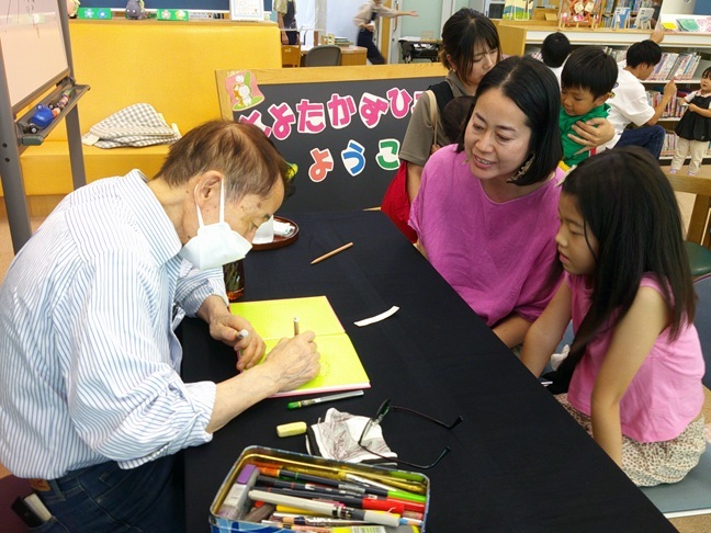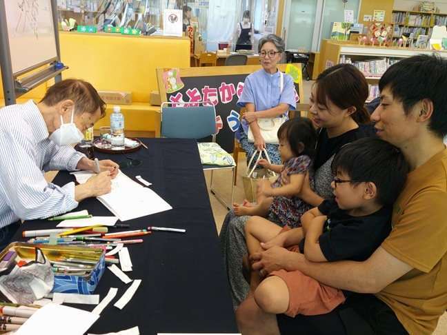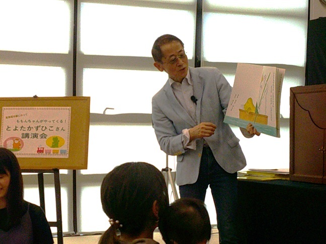 9月15日(月・祝)、分館絵本フロアにて、絵本作家とよたかずひこさんの講演会を開催しました絵文字:お知らせ。大人気の「ももんちゃん」「バルボンさん」シリーズなどの絵本誕生にまつわるエピソードを語っていただき、また大型紙芝居や大型絵本読み聞かせの実演もあり、大人も子どももとても楽しい時間を過ごしました絵文字:良くできました OK