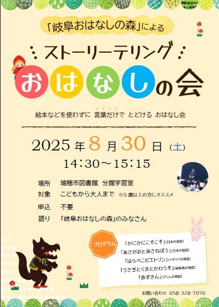 そして、今回は瑞穂市図書館でのおはなしは2回目となる”岐阜おはなしの森”の皆さんに語っていただきます!