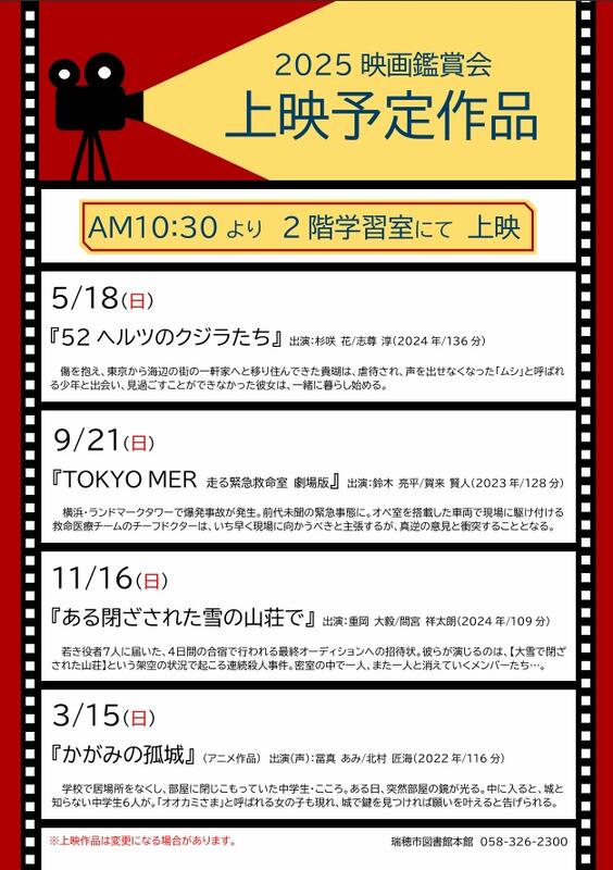 詳細は決まり次第、HPと館内ポスターでお知らせします。