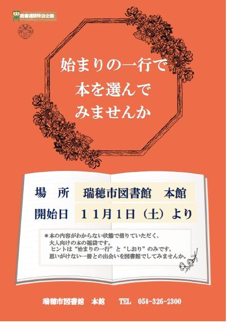 11月1日(土曜日)より、「始まりの一行で本を選んでみませんか」を開催中です。
