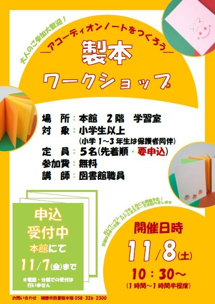 申し込み:11月 7日 (金曜)まで 本館カウンターにて