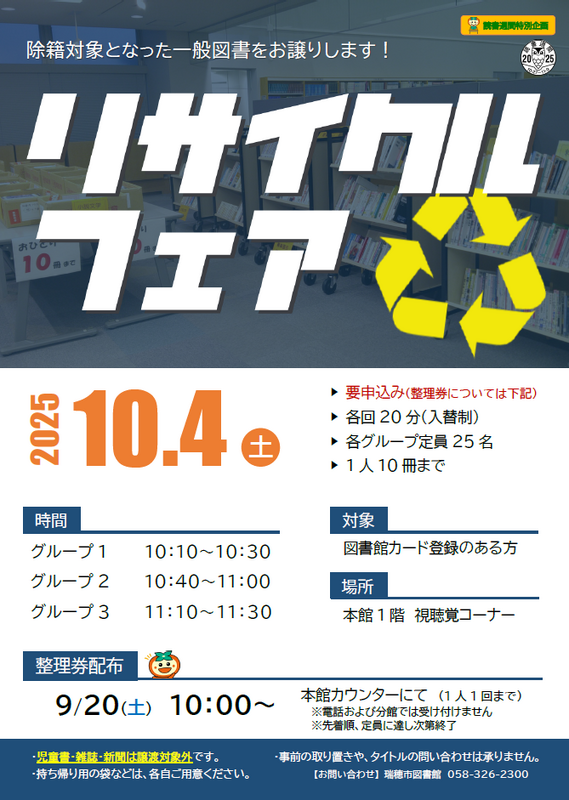 【本館】図書の「リサイクルフェア」を行います。